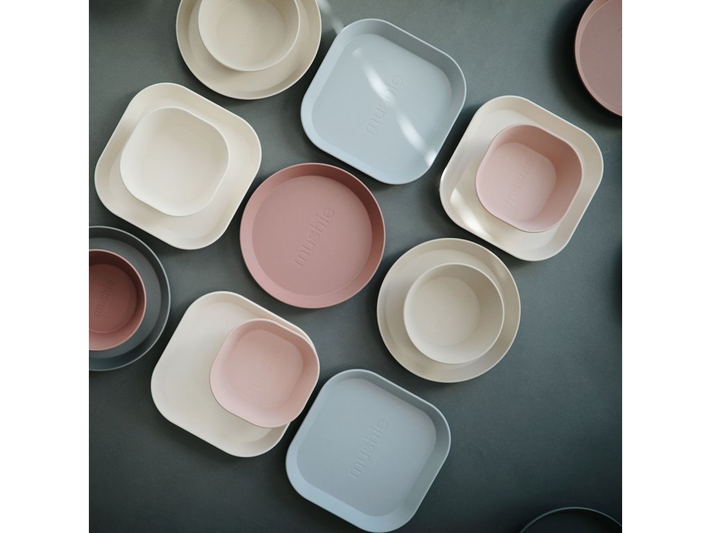 Mushie dětský nádobí je tak vkusný a originální, až máte chuť mít jeden set jen pro sebe J Díky jeho tvaru je snadno uchopitelný i pro děti. Hranaté talířky krásně doplňují další barevně sladěné Mushie sety dětského nádobí a doplňků. Vaše stolování s dětmi bude jednoduše stylové a originální.